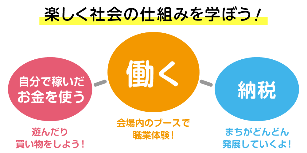 子どもたちが働いたり納税をしたりしながら、町を発展させ、楽しく社会の仕組みを学んでもらうことが「しごとーーい」開催の最大の目的です。